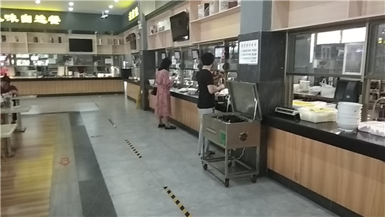 安顿好后,午饭时间到了。建筑工程学院的符榆婕同学拿着自备的饭盒到学校食堂打饭。佩戴好口罩、按照七步洗手法洗手后,间隔安全距离有序从指定入口进入食堂,打饭完毕后,再通过指定出口离开。体验了熟悉而又“新鲜”特别的打饭环节,符榆婕深刻体会到学校为了同学们的用餐安全煞费苦心。“疫情期间,经过了宅家学习的日子,我们都意识到校园生活的珍贵。我们一定珍惜青春时光,严格遵守在特殊时期学校的各项安排,为疫情防控奉献自己的力量,确保校园平安无虞。”